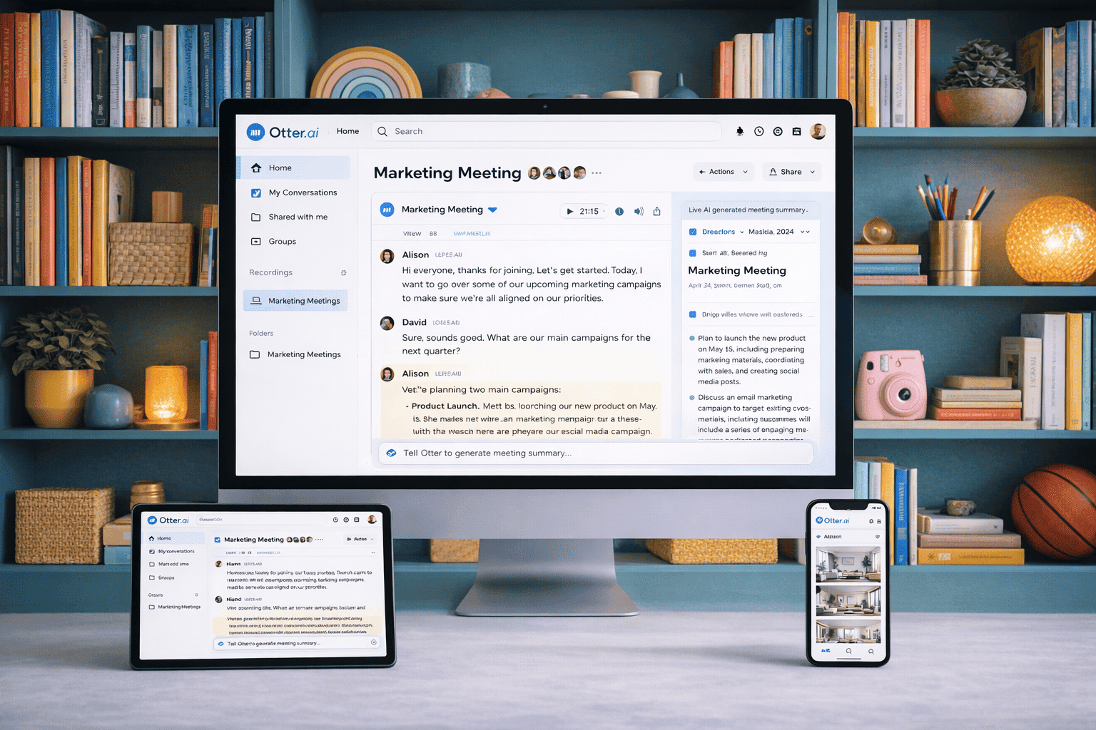 • Транскрибация и поиск: Otter не просто записывает звук, а создает интерактивную стенограмму, в которой можно мгновенно найти нужное слово или тему.
