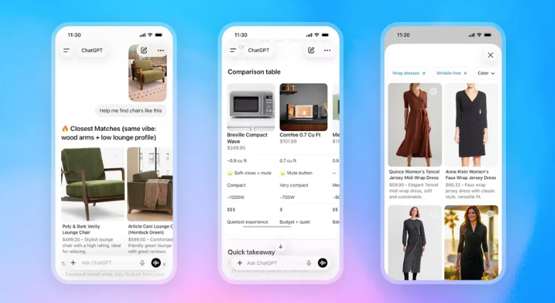 Хорошая новость в том, что даже если вам придётся покинуть приложение, чтобы совершить покупку, компания OpenAI улучшила возможности поиска товаров. Теперь пользователи могут загружать изображения в качестве источника вдохновения, например, изображения из журналов, блогов или таких сайтов, как Pinterest, и получать предложения похожих товаров.